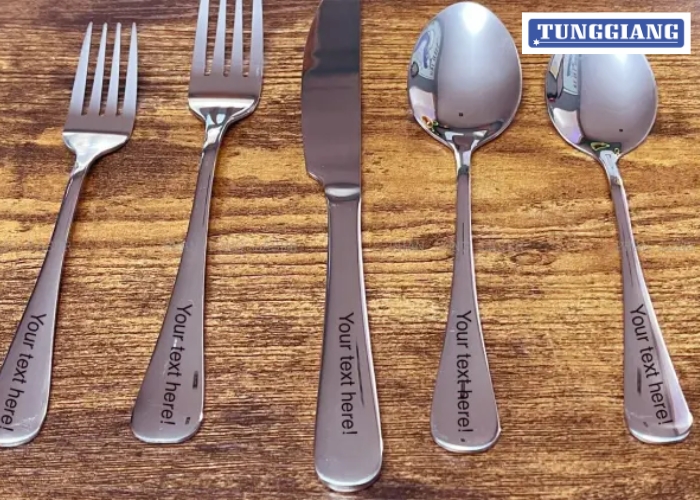 - Đồ Gia Dụng: Khắc laser inox được sử dụng để tạo ra những sản phẩm trang trí nội thất, như kỷ niệm chương, bảng tên, hay những sản phẩm gia dụng như muỗng, nĩa, bình giữ nhiệt.
