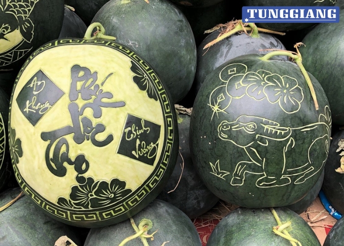 - Khắc chữ lên dưa hấu: Thường được sử dụng để khắc lời chúc, tên người, hay thông điệp ý nghĩa.