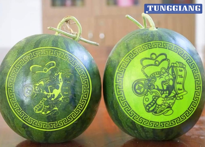 - Khắc hình lên dưa hấu: Khắc hình ảnh theo yêu cầu, có thể là hình ảnh con vật, hoa văn, hay logo thương hiệu.